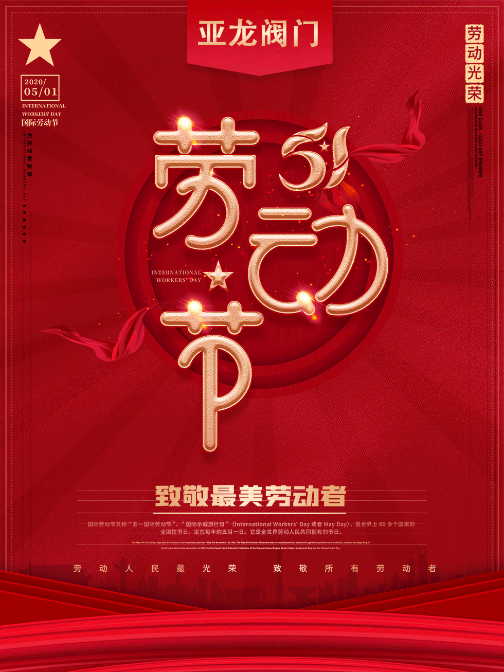 一年一度的五一小長(zhǎng)假將至,在這里永嘉縣亞龍閥門(mén)制造有限公司全體員工向您及您的家人送出最真摯的祝福,提前祝大家勞動(dòng)節(jié)快樂(lè)!